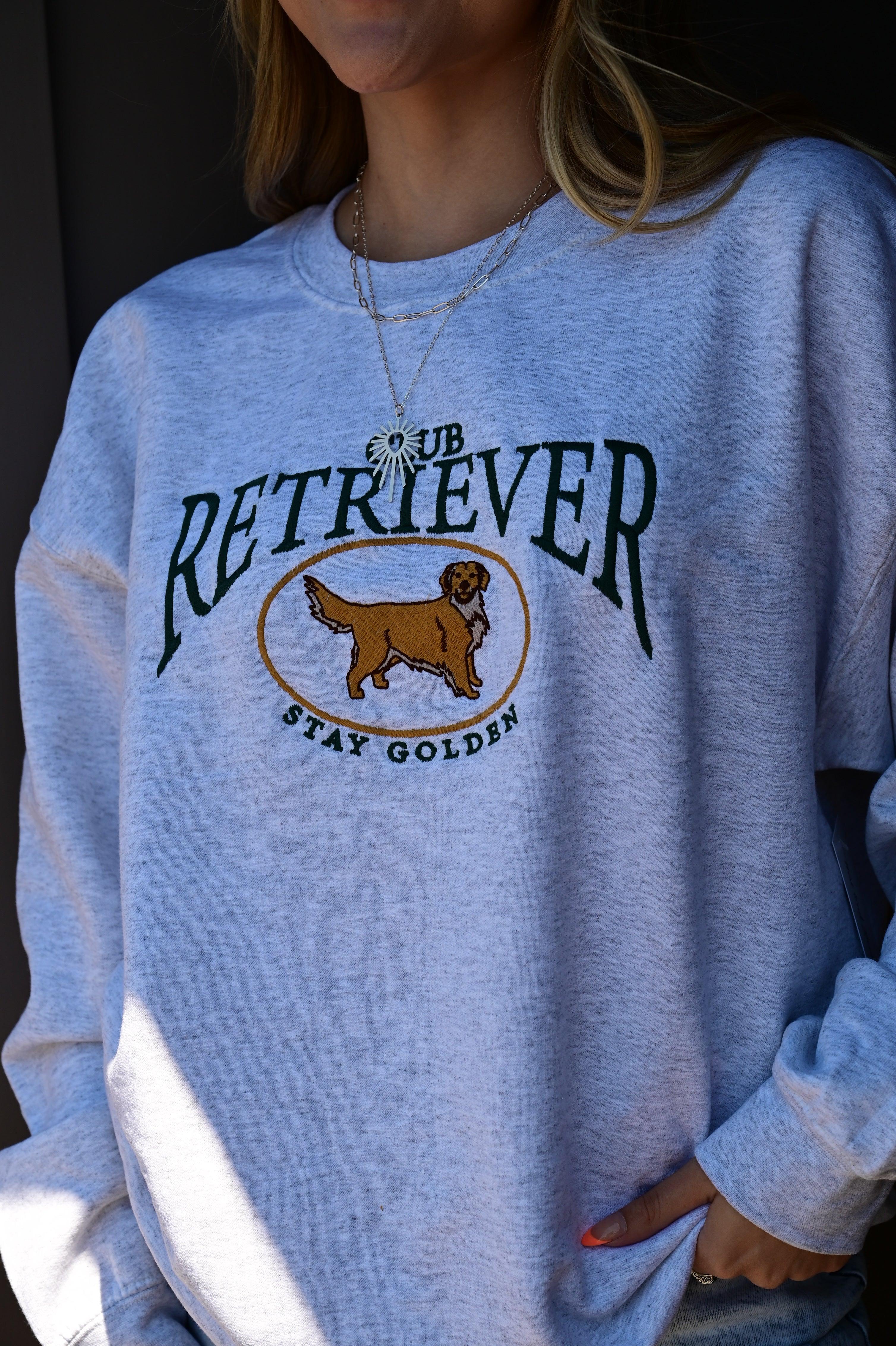 LONG SLEEVE CREW-NECK EMBROIDERED "CLUB RETRIEVER" PET-DOGGY OVERSIZED GRAPHIC SWEATSHIRT