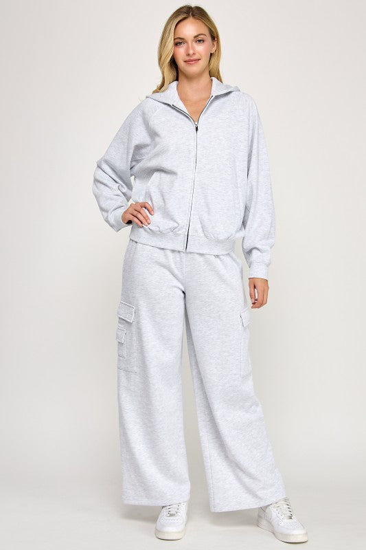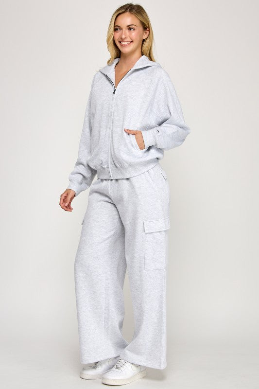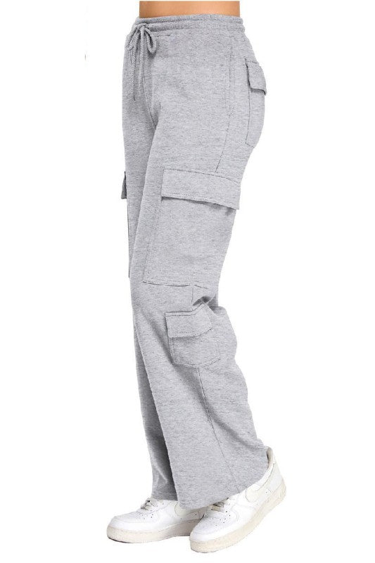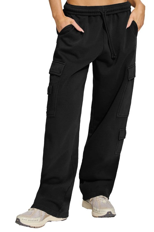 FLEECE STRAIGHT LEG MID-RISE CARGO PANTS